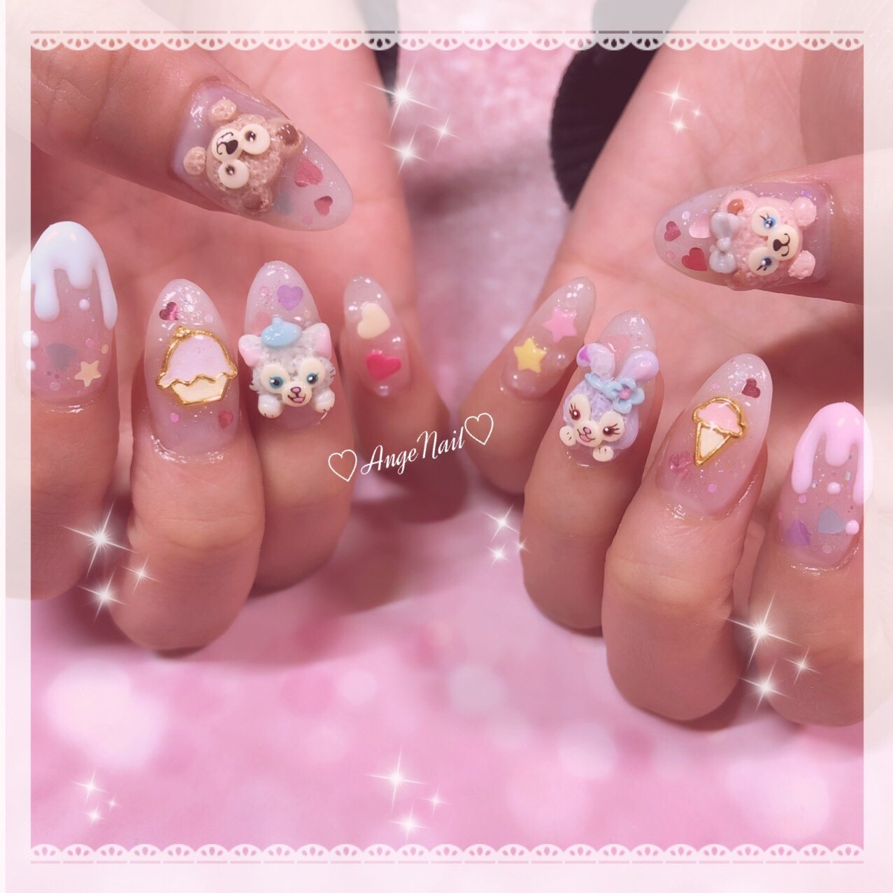 Achanailさんのインスタグラム写真 Achanailinstagram 春らしいパステルのお花とステラルーちゃんとジェラトーニくんの3dアート Ameblo Jp Acha Nail Entry Html ネイル ジェルネイル フィルイン フィルイン導入サロン 南